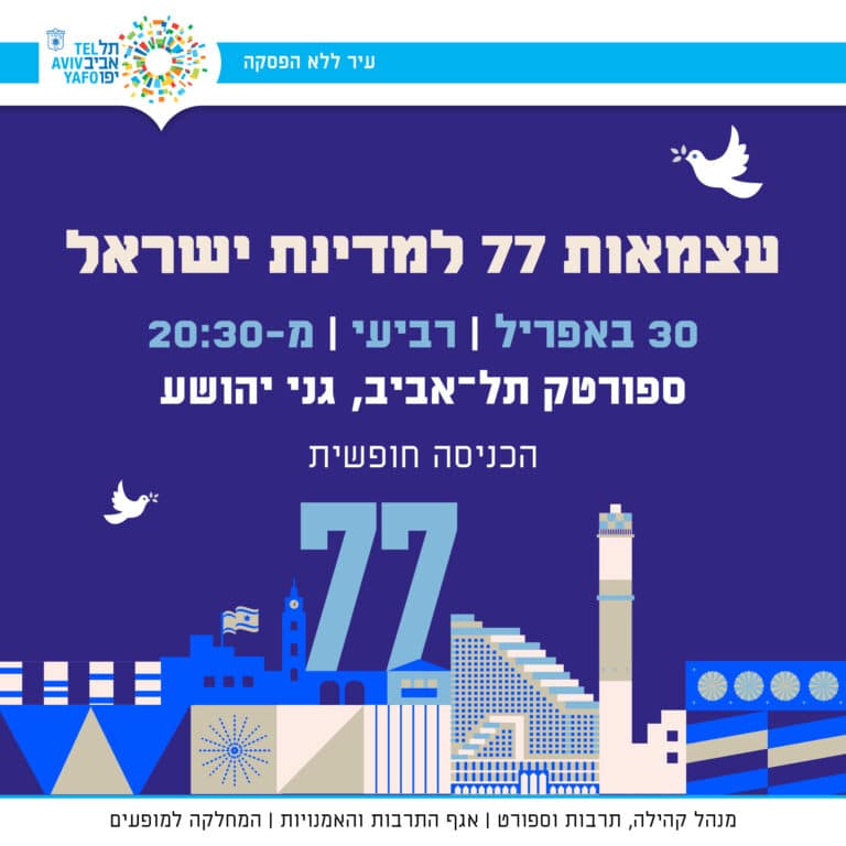 ​עיריית תל אביב-יפו מזמינה אתכם ואתכן לחגיגות העצמאות, עם מיטב האמנים בבמה המרכזית של העיר.